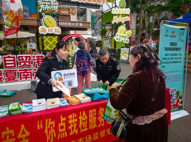 2025年2月4日,海口市市场监视办理局美兰正在国度级汗青文化街区——骑楼老街组织开展食物平安“你点我检 办事惠平易近生”从题宣传勾当。聚焦群众关心的食物选购、食用平安、法令学问等需求,保健食物和